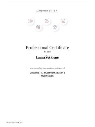 Lietuvoje nuo 2018 m. dirba finansų srityje, konsultuoja asmeniškai ir veda finansinio raštingumo mokymus įmonėse.